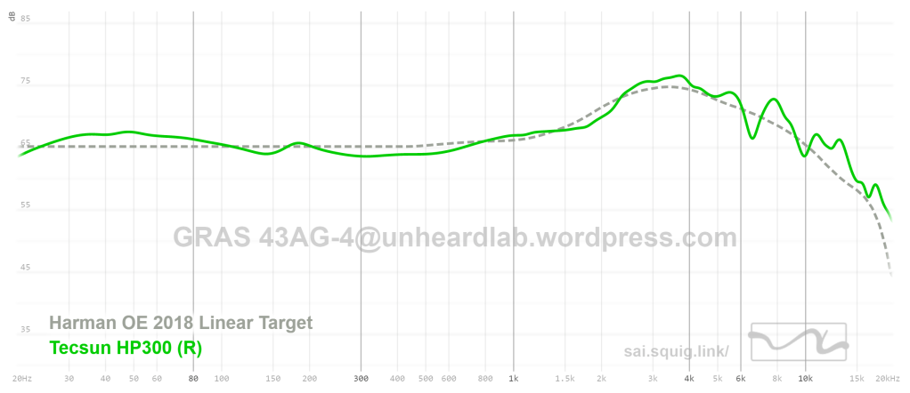 This is perhaps the closest to the target I’ve measured so far. I am still not sure how they managed to get this amount of bass in an open-back design. You can see from the pic that the back side of the driver is covered with some sort of woven fabric material, but sound does leak a lot.