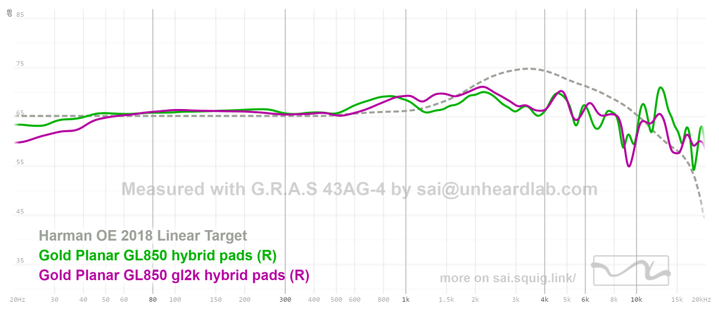 Pads: Somewhat ironically the best combo I found for these headphones are the default pads, but on the other headphones. That means the GL2000 sound the best with the default pads of the GL850 and vice versa. Let the measurements talk: