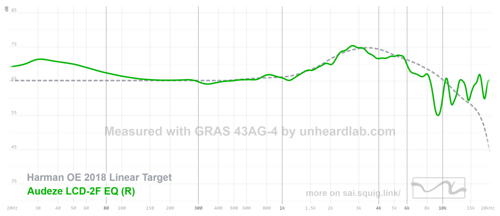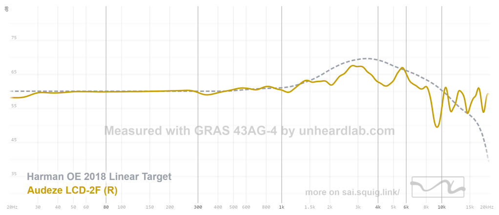 The Audeze LCD-2F could benefit significantly from EQ. Once you adjust the uneveniss in the upper mids and highs, the tonal improvement is immediately clear. The ticky thing here is to restore a linear upper-mids performance while not boosting the lower treble too much. This is tricky as I tend to avoid high-Q filters. It may also be a good approach, alternatively, to leave a bit of a dip there, just so you know you’re listening to a pair of Audezes. 🙂