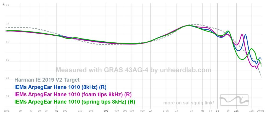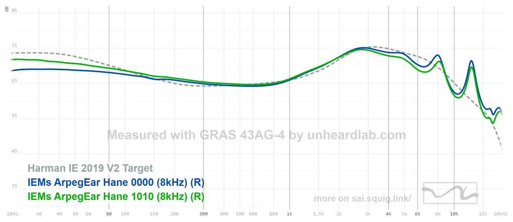For those interested in how the tuning switches affect the sound, I’ve included the relevant measurements here  (note: to ensure that the insertion depths are controlled when tinkering with the switches, here the resonance frequency is not 8kHz as you would typically see from other measurement databases or the measurement I include for most IEMs).