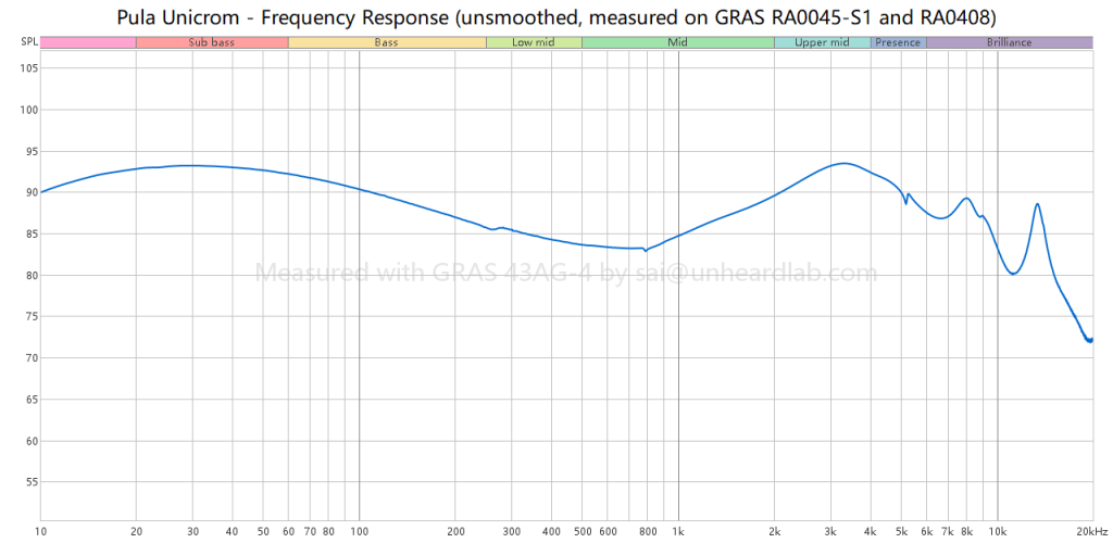 The Pula Unicrom delivers a slightly U-shaped tuning, with strong bass presence and crisp treble. The midrange is quite linear, carrying good articulation and clarity. It avoids the plasticky mids or shoutiness that can plague this price tier. Overall, it makes for an engaging listen, particularly well-suited to modern pop, rock, and EDMs.