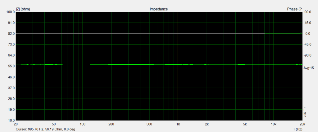 Comment: impedance curve is flat all the way, typical of planar headphones.