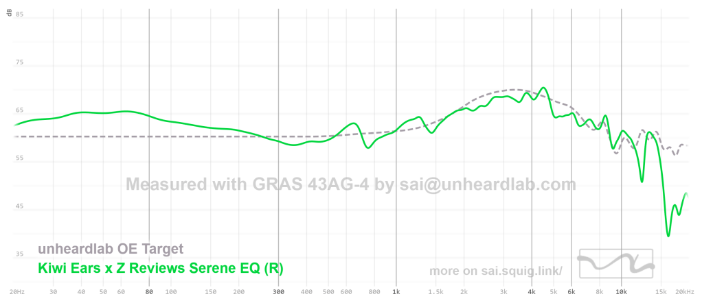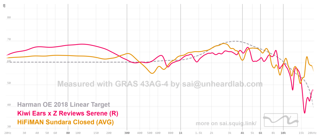 Named Serene, the goal here, according to Z Reviews, was to create a headphone for quiet listening. This logic could come from the Fletcher-Munson curve: when you turn the volume down, human hearing loses sensitivity to bass and treble first. So, theoretically, a headphone with boosted ends should sound ‘normal’ at quiet levels.