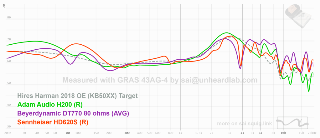 On the more subjective qualities, the H200 is unremarkable. The soundstage is not large or particularly open, which is expected given the closed-back design and studio-oriented tuning. The DT 770 Pro has a wider presentation by comparison. That said, I find the H200 more natural than the HD 620S, which tends to sound hollow and disjointed. Clarity is a strong suit here, making it well-suited for catching flaws in a mix. Dynamics are also respectable for the price: bass is punchy without sacrificing cleanliness. Do not expect the effortless extension of an open-back planar, though.