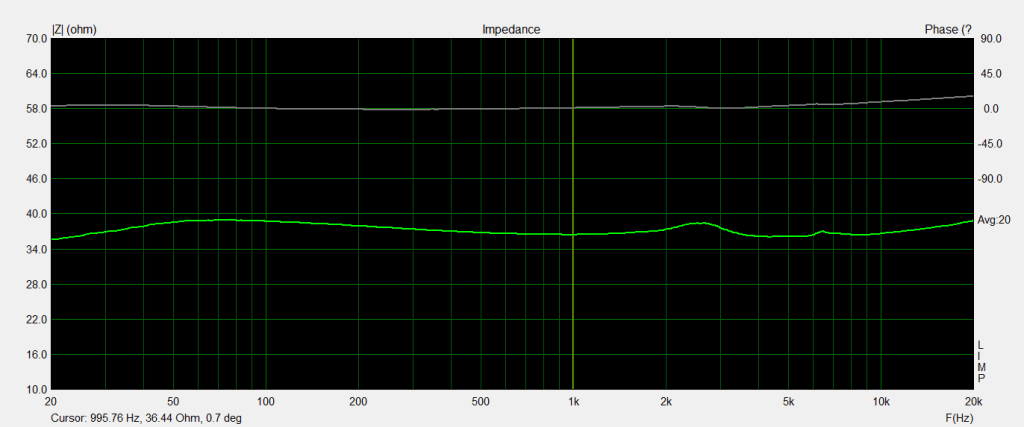 Impedance: 36 Ω at 1kHz (measured)